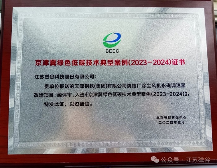 5月17日,正值第34個(gè)全國節(jié)能宣傳周之際,一場以“發(fā)展綠色新質(zhì)生產(chǎn)力,推進(jìn)京津冀協(xié)同發(fā)展”為主題的“2024京津冀綠色低碳技術(shù)案例推介交流會”在北京盛大舉行。本次交流會由北京節(jié)能環(huán)保中心、海淀區(qū)發(fā)展改革委聯(lián)合主辦,天津市節(jié)能環(huán)保中心、河北省綠色發(fā)展服務(wù)中心協(xié)辦,旨在推廣綠色低碳技術(shù),促進(jìn)京津冀地區(qū)綠色協(xié)同發(fā)展。 在頒獎(jiǎng)環(huán)節(jié),包括江蘇磁谷在內(nèi)的19家企業(yè)榮獲北京節(jié)能環(huán)保中心發(fā)布的《京津冀綠色低碳技術(shù)典型案例(2023-2024)》殊榮。入選案例時(shí)效性強(qiáng),充分反映了綠色低碳領(lǐng)域新進(jìn)展,對引導(dǎo)京津冀地區(qū)用能單位采用先適用的綠色低碳技術(shù)產(chǎn)品,促進(jìn)企業(yè)能效提升、產(chǎn)業(yè)升級具有重要的引領(lǐng)與促進(jìn)作用。